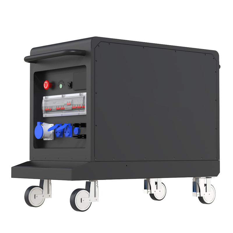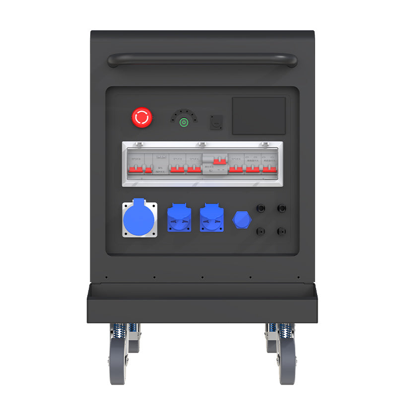 Mobile trolley energy storage, like 12K-30, is convenient for users to switch scenarios independently and be used in various industrial power consumption environments. At the same time, unlike the mobile trolley energy storage on the market, we use a power frequency inverter, which is suitable for the instantaneous current during the start-up of various inductive loads